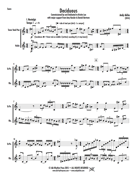 Solo Version: Steel PanCombo Version: Steel Pan, Violin (opt.), Cello (and/or Double Bass), & Drums -