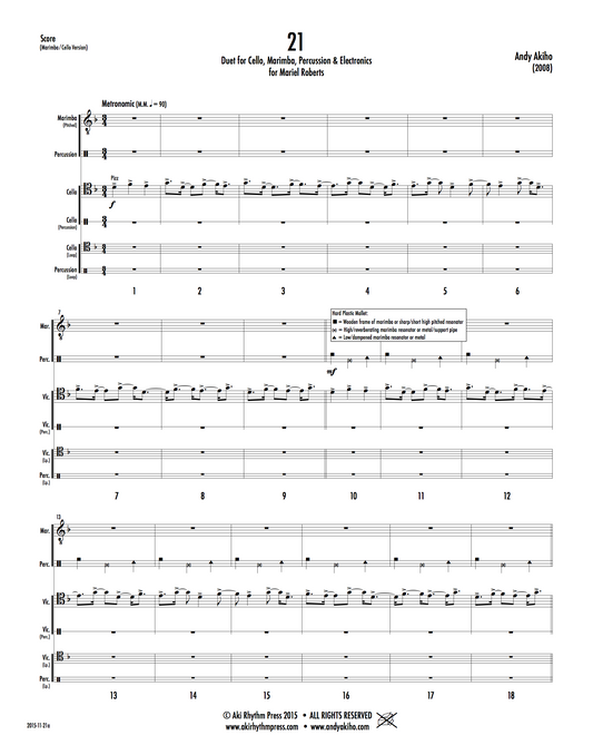 Solo Version: Steel PanCombo Version: Steel Pan, Cello, Bass, & Drums (opt. Toy Piano, Glockenspiel) -