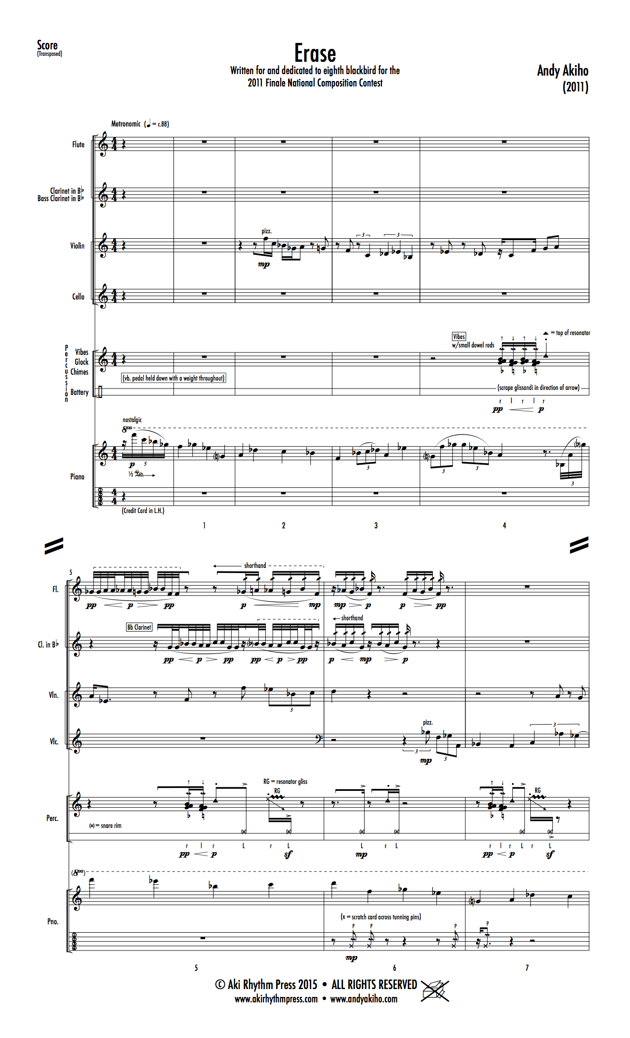 Flute, Clarinet in Bb (dbl. Bass Clarinet), Violin, Cello, Percussion, & Piano